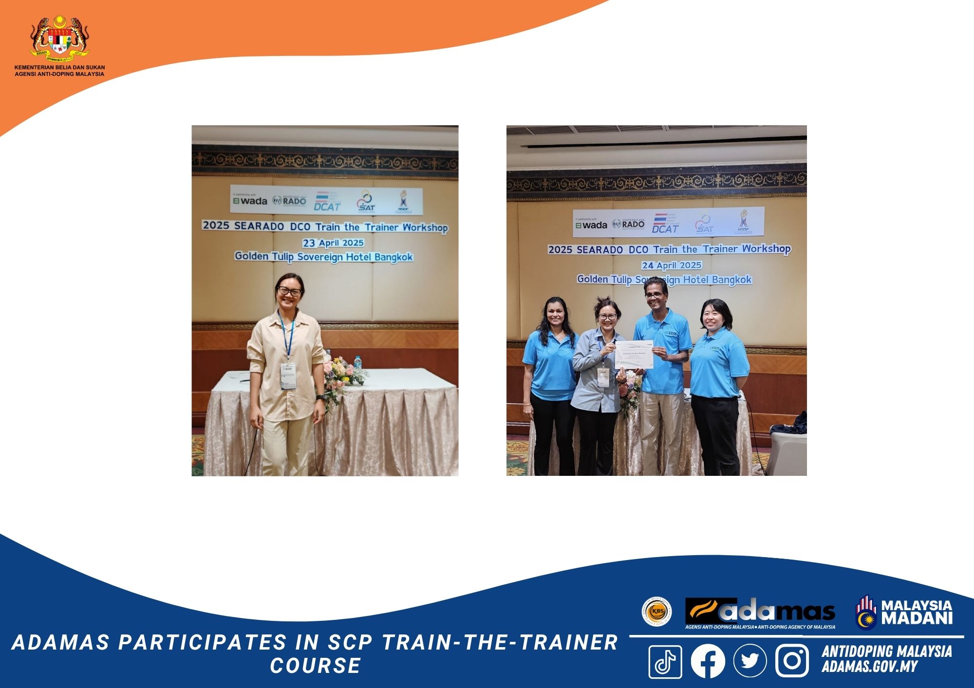 BANGKOK, 24-27 April – The Anti-Doping Agency of Malaysia (ADAMAS) continues to strengthen its testing workforce through participation in the Sample Collection Personnel (SCP) Train-the-Trainer Course held in Thailand.